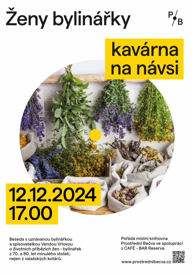 Ve čtvrtek 12.12. v 17:00 vás zveme do CAFÉ-BAR Reserva na besedu o životních příbězích žen - bylinářek ze 70. a 80. let minulého století. Přednášející bude uznávaná bylinářka Vanda Vrlová.