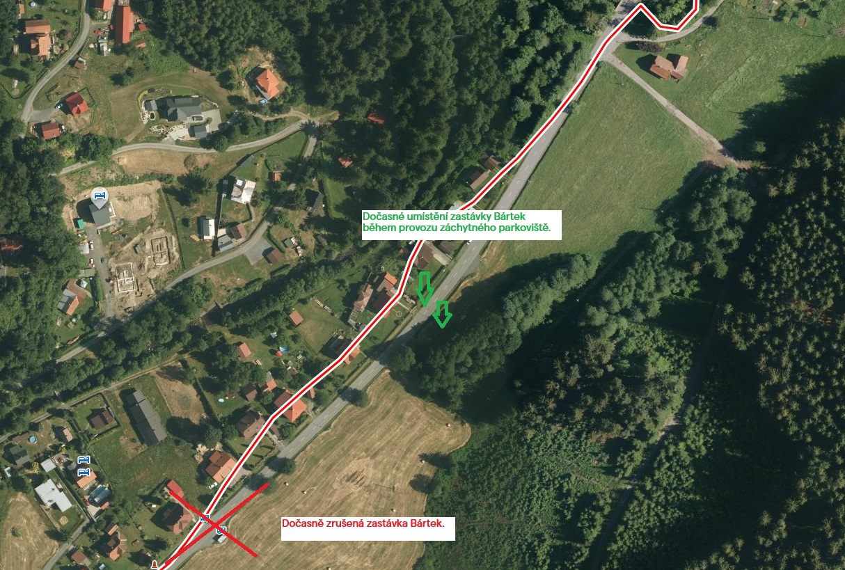 Autobusové zastávka „Bártek“ bude v tyto dny posunuta cca o 200 m výše směrem k Pustevnám. (viz příloha)