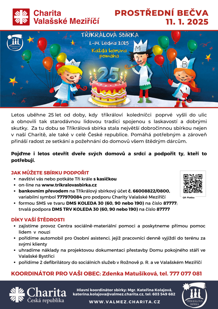 Tříkrálová sbírka je největší dobročinnou sbírkovou akcí v České republice. Do její organizace a průběhu koledování se každoročně zapojí více než 70 tisíc dobrovolníků, kteří do kasiček vyberou desítky milionů korun. Vykoledované peníze pomáhají prostřednictví Charity České Republiky.